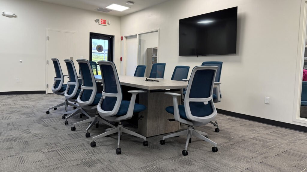 Professional meeting rooms inside the community center; flat-screen TVs (HDMI/USB-C) + fast Wi-Fi